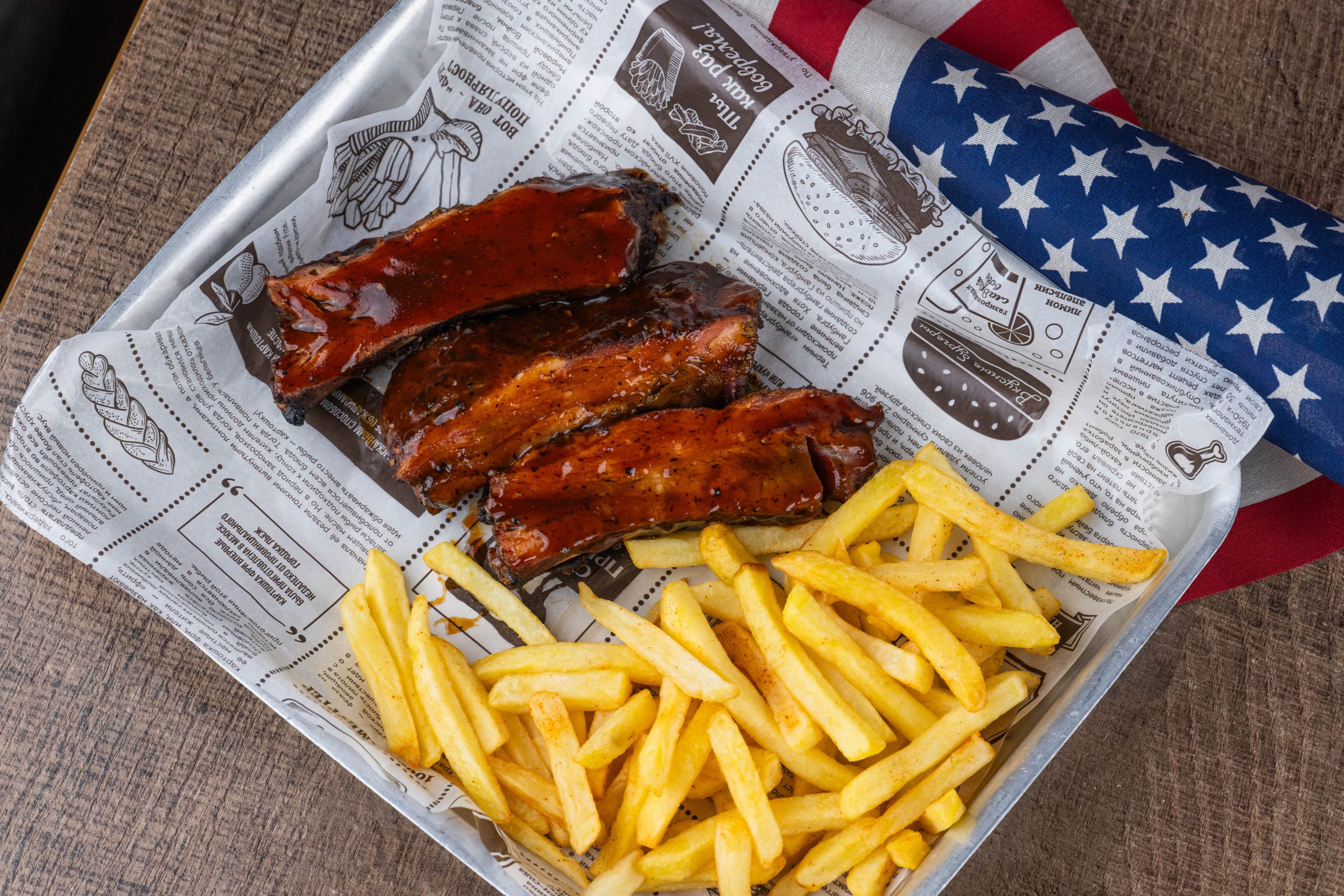 Свиные ребра с картофелем фри